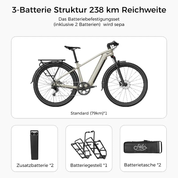 Die Reichweite wird durch Unterstützungsmodus, Gelände, Windverhältnisse, Temperatur, Straßenbelag, Verkehrsstops, Fahrergewicht, Beladung und Reifendruck beeinflusst.